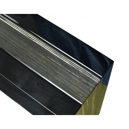 Exterior: Black High Gloss Wood Finish with Black and White Woodgrain Design